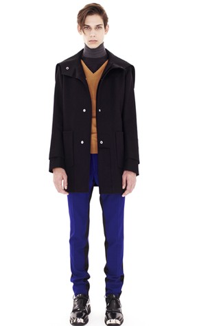this collection was pretty much fucking garbage,for one i am really irked that they've put damn sneakers onto every look,no matter what you're wearing and however much it costs,wearing sneakers will instantly cheapen you into white thrash category.its like those fucking chinese girls i used to spot in melbourne who think they can carry gucci bags then wear flip-flops and not look like retired prostitutes.besides this though,i'm upping the ante because the new runway collections have been largely unimpressive,sometimes i've nothing to post and am forced to choose two of the least mediocre looks,so by just picking two you're ensured to be protected from the overwhelming hediosity of the rest. balenciaga is a name i associate to good things,but this fall they've returned to a lot of tired looks,so very 2008,but i'll say i fell in love with the two coats above.i love the haphazard construction of the left,its really not necessary to have that many lines and pockets on a coat (what am i,a drug dealer?),but they look beautiful anyway,and a slight break from the boring two or three button peacoats of this season,they've gone with a plain black coat that i imagine would look nice paired with anything and anything.the gloves,shoes,hair,i don't know who they're trying to appeal to,and colored skinnies give me horrid flashbacks of mika and that whole season when we saw hipsters flaunt their bony legs as if it were something to be proud about
